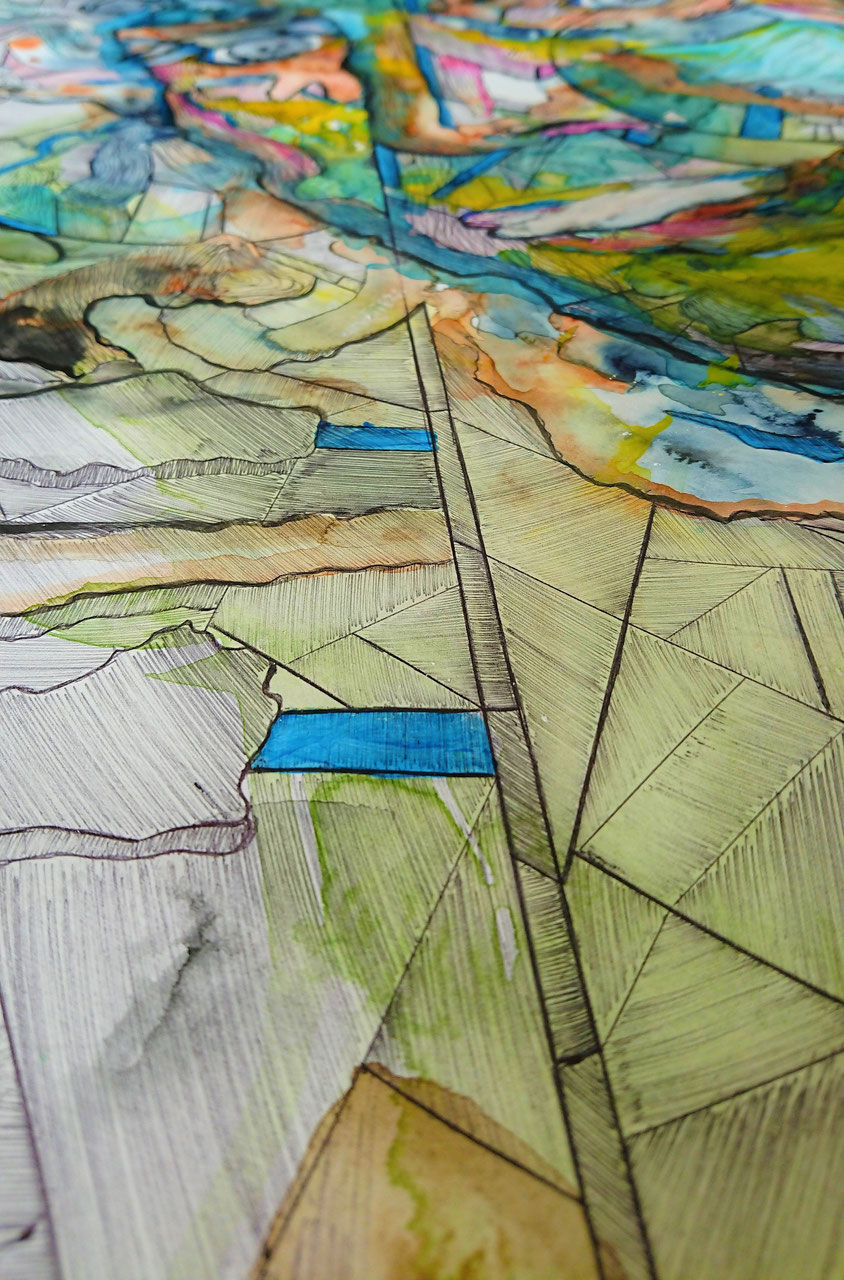Technik: gemalt und gezeichnet mit Kugelschreiber und Aquarellefarben auf Aquarellpapier, perspektivisch fotografiert